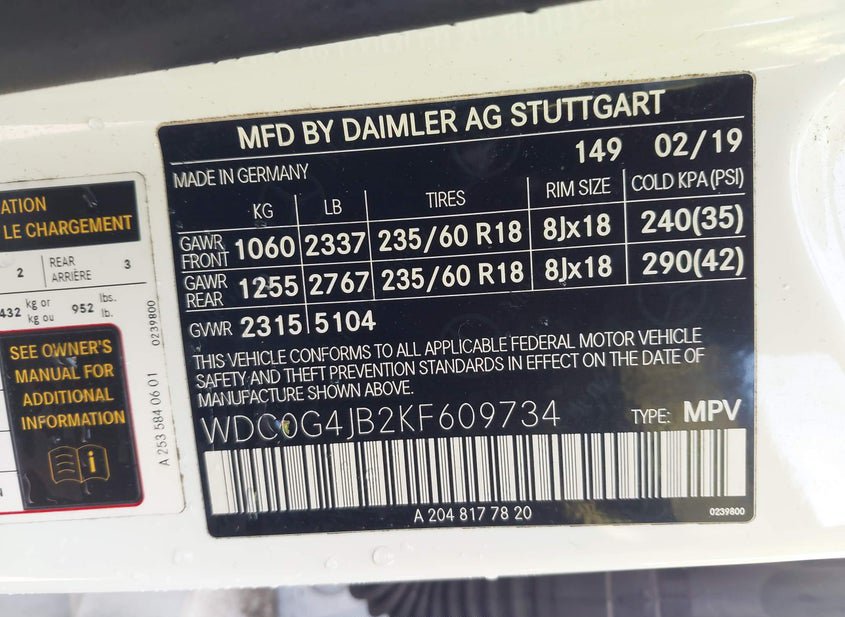- VIN: WDC0G4JB2KF609734