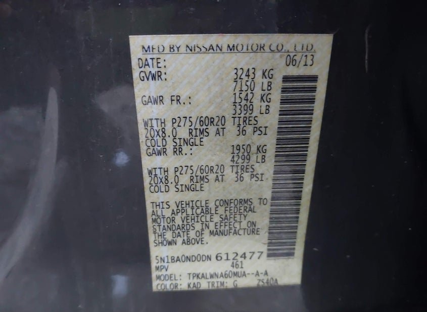 - VIN: 5N1BA0ND0DN612477