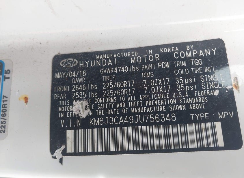 - VIN: KM8J3CA49JU756348