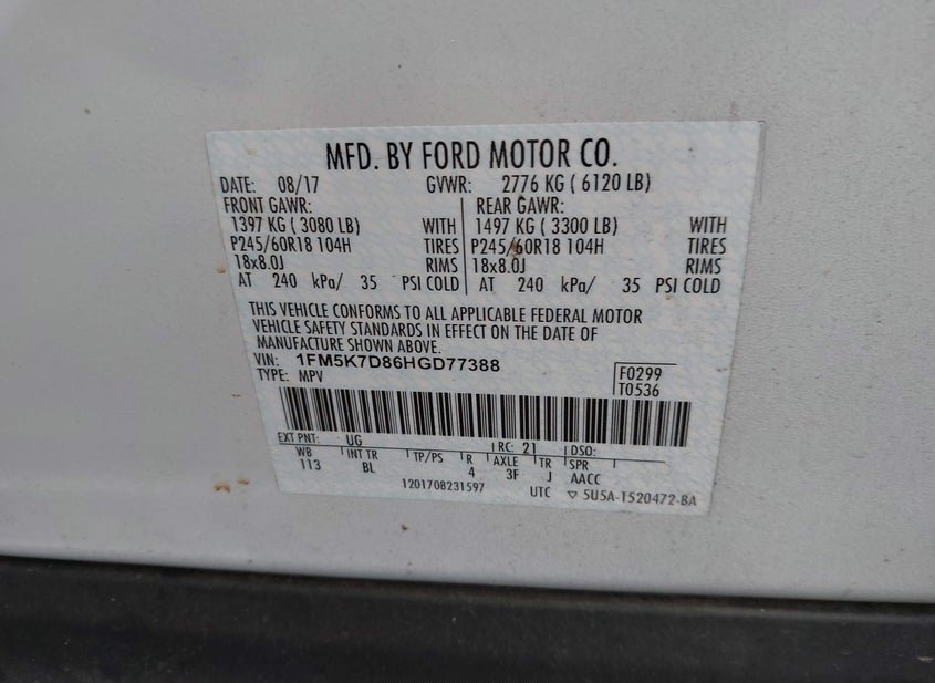 - VIN: 1FM5K7D86HGD77388