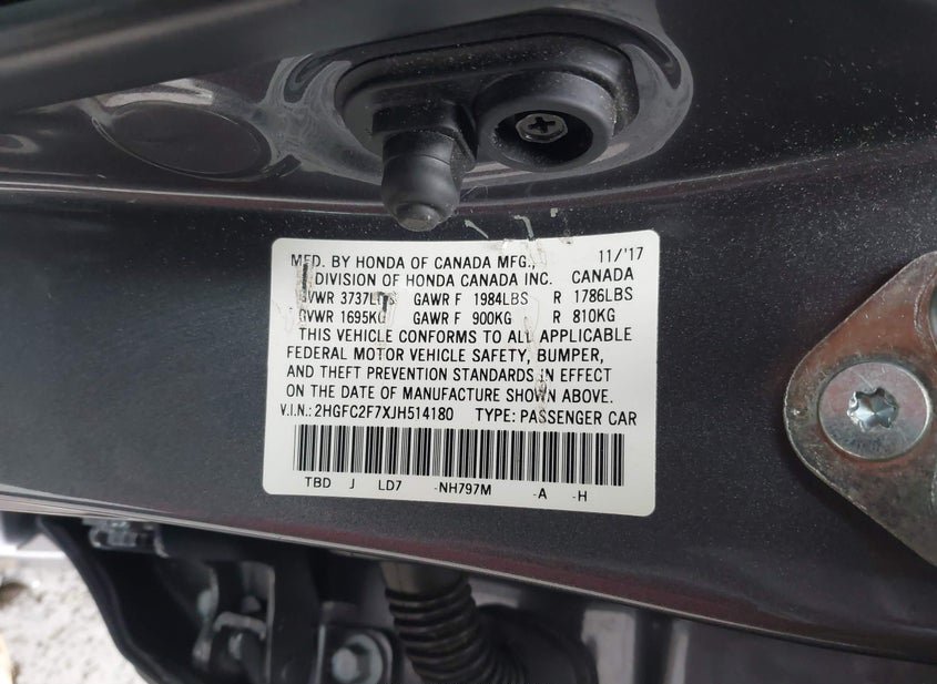 - VIN: 2HGFC2F7XJH514180