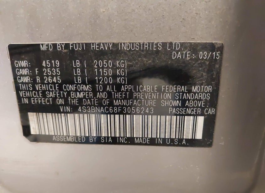 - VIN: 4S3BNAC68F3056243
