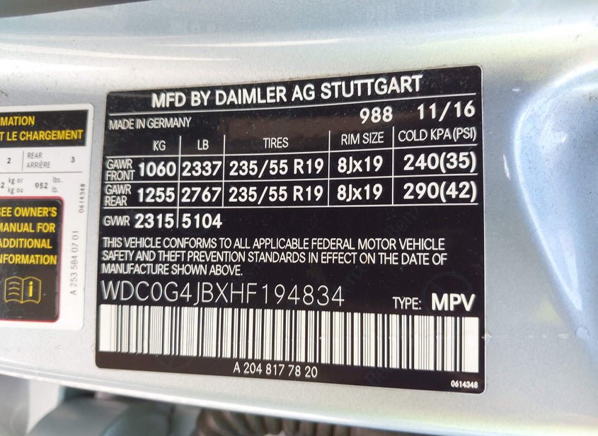 - VIN: WDC0G4JBXHF194834