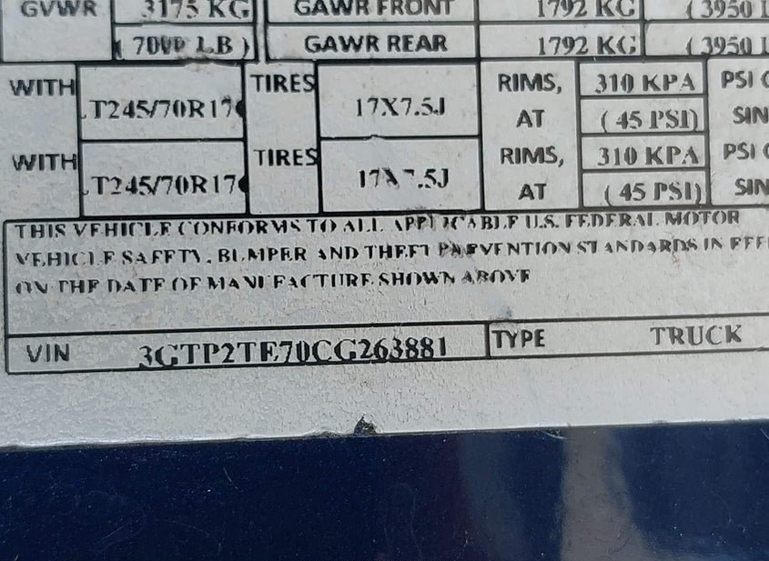 - VIN: 3GTP2TE70CG263881