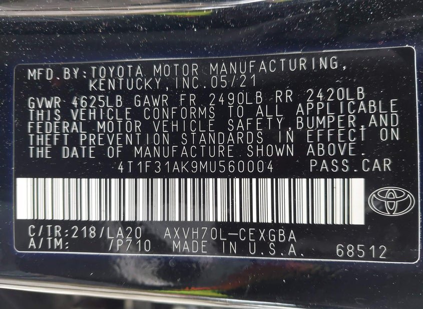- VIN: 4T1F31AK9MU560004