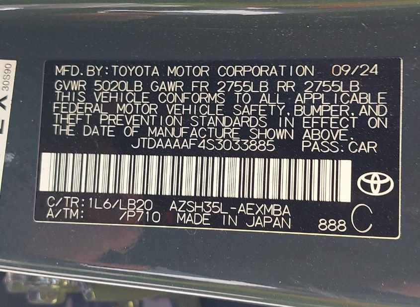 - VIN: JTDAAAAF4S3033885