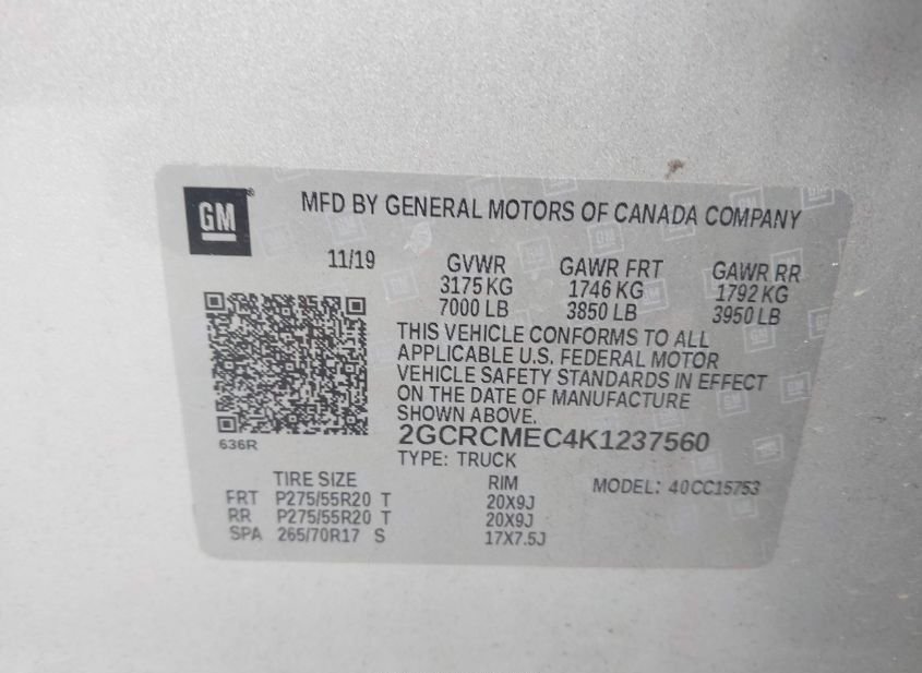 - VIN: 2GCRCMEC4K1237560