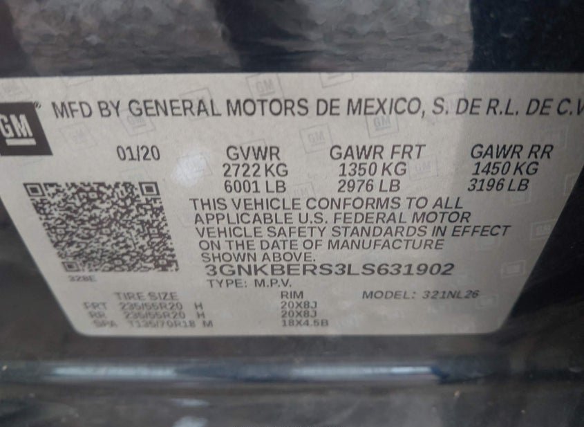 - VIN: 3GNKBERS3LS631902