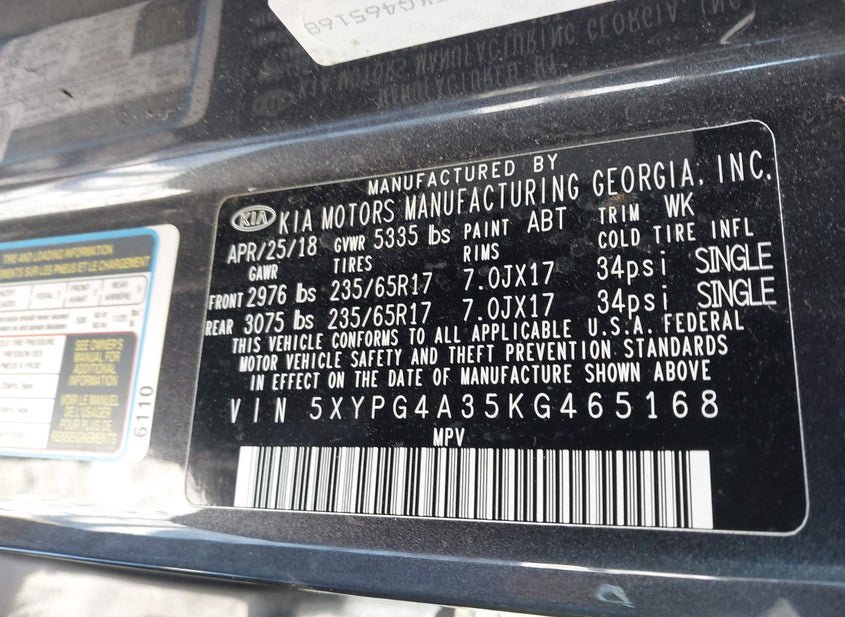 - VIN: 5XYPG4A35KG465168