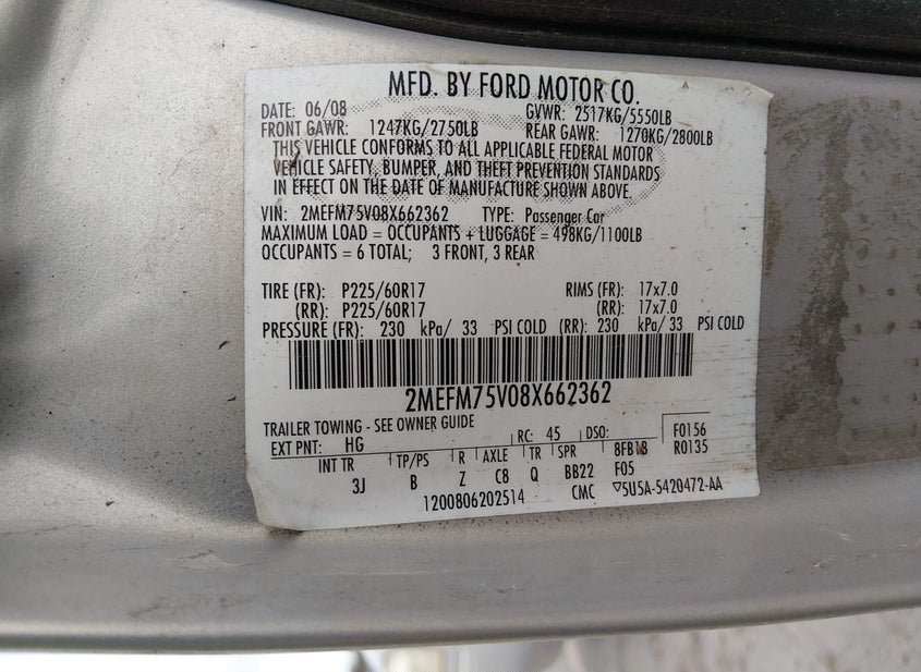 - VIN: 2MEFM75V08X662362