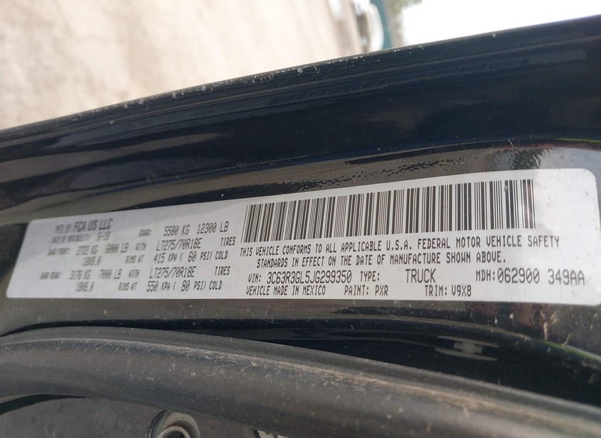 - VIN: 3C63R3GL5JG299350