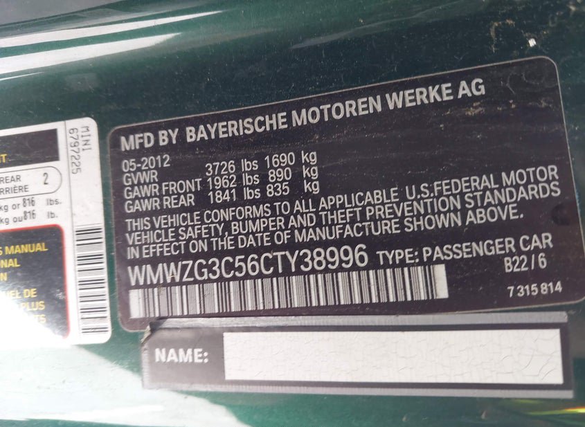 - VIN: WMWZG3C56CTY38996