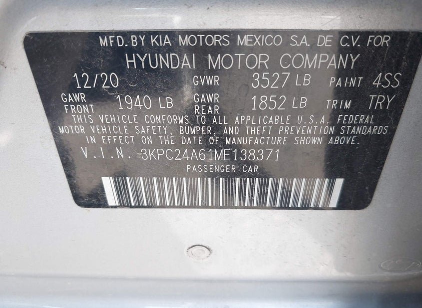 - VIN: 3KPC24A61ME138371