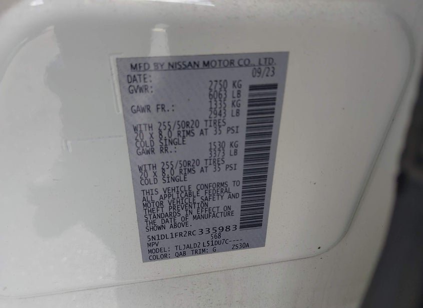 - VIN: 5N1DL1FR2RC335983
