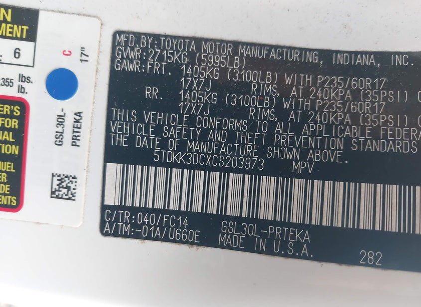 - VIN: 5TDKK3DCXCS203973