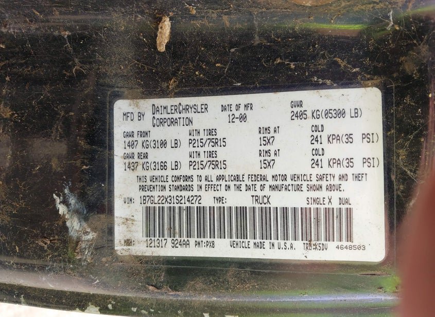 - VIN: 1B7GL22X31S214272