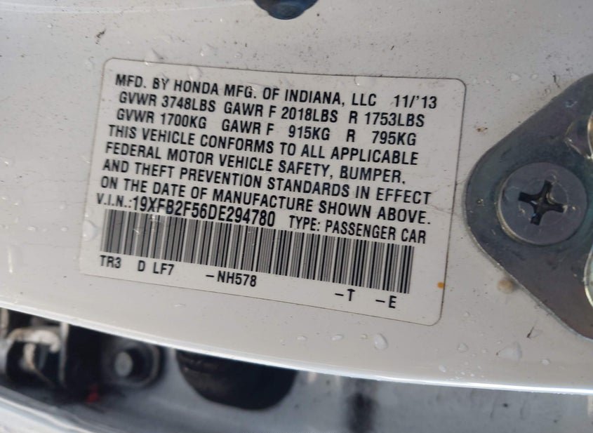 - VIN: 19XFB2F56DE294780