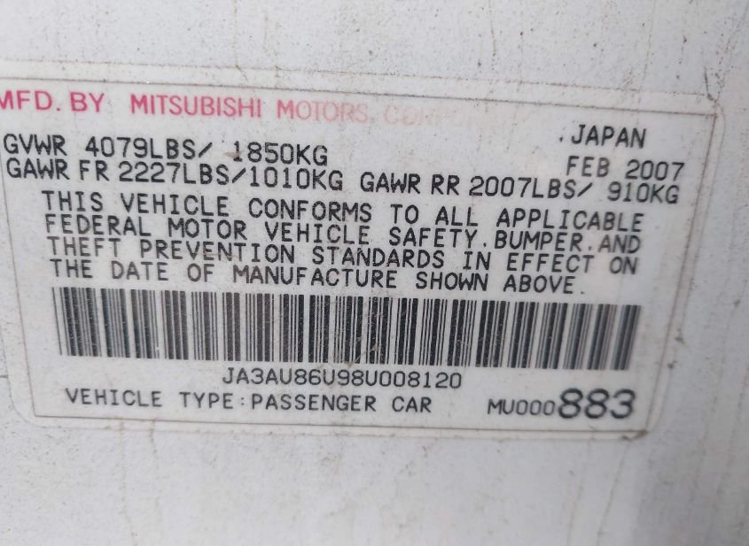 - VIN: JA3AU86U98U008120
