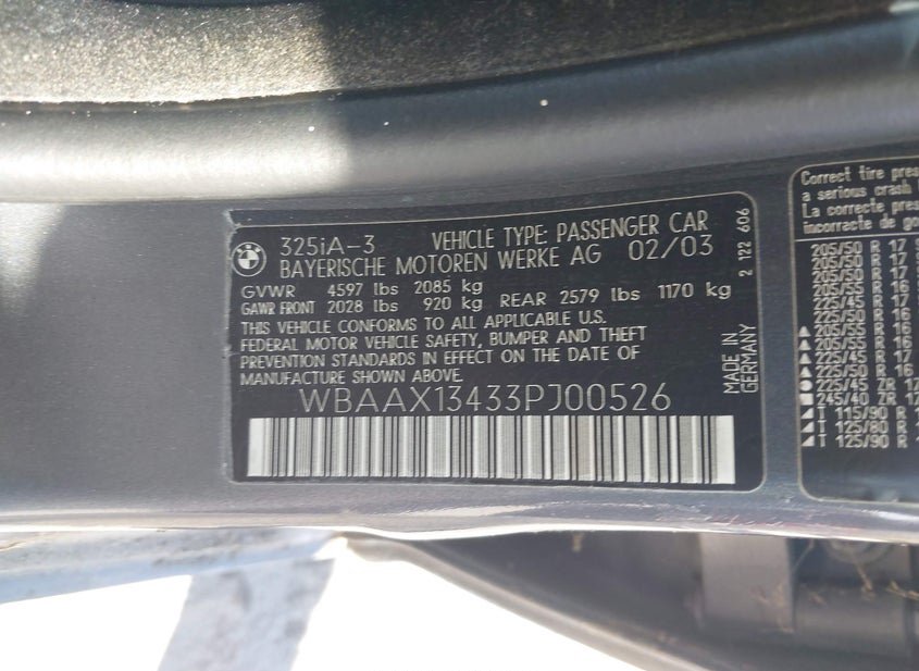 - VIN: WBAAX13433PJ00526