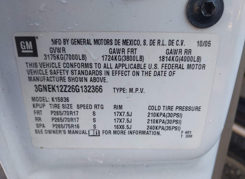 - VIN: 3GNEK12Z26G132366