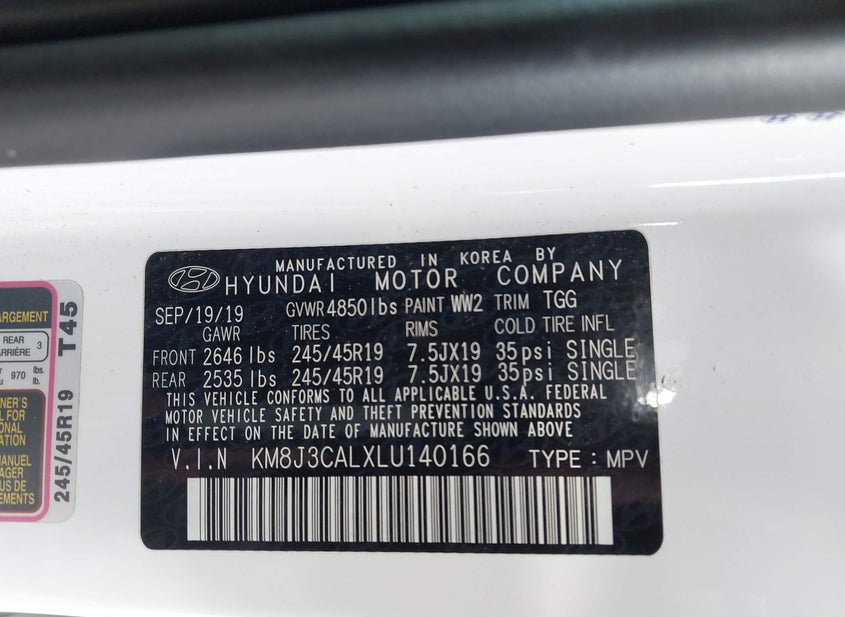 - VIN: KM8J3CALXLU140166
