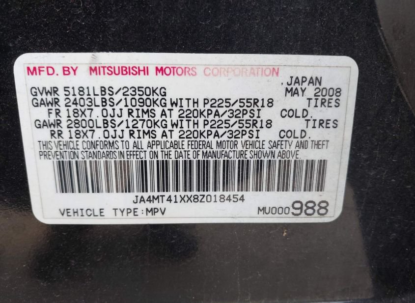 - VIN: JA4MT41XX8Z018454