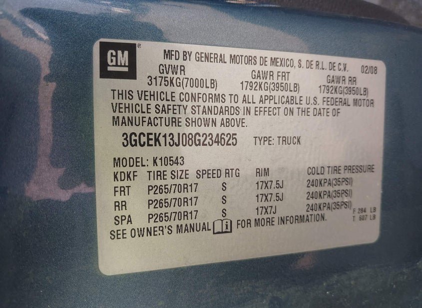 - VIN: 3GCEK13J08G234625