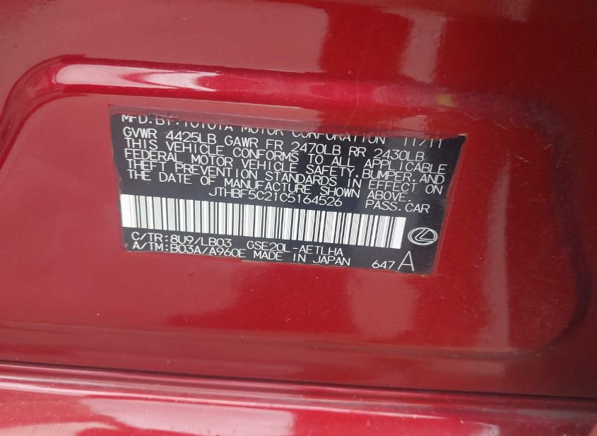 - Название лота: 2012 LEXUS IS 250