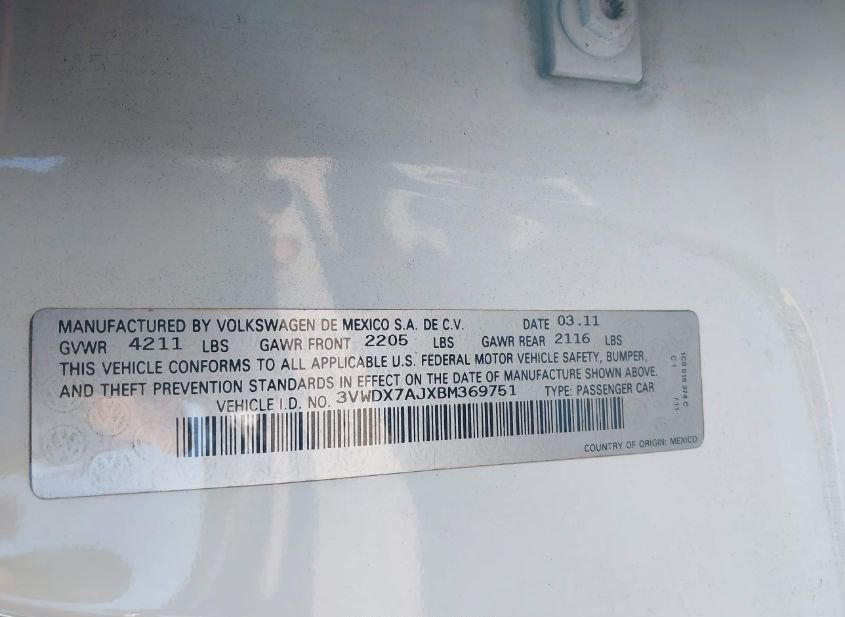 - VIN: 3VWDX7AJXBM369751