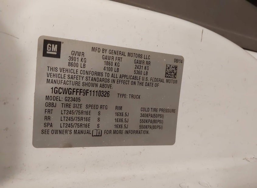 - VIN: 1GCWGFFF9F1110326