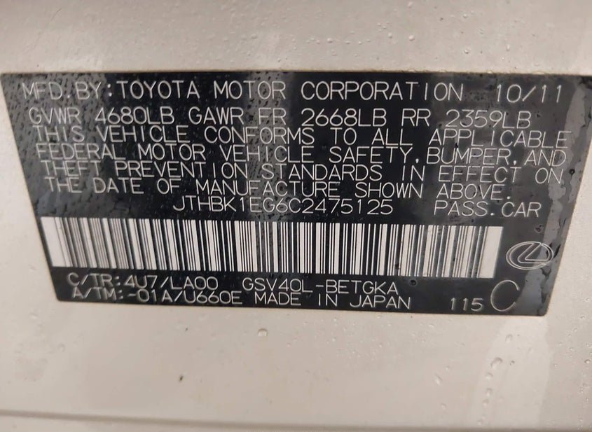 - VIN: JTHBK1EG6C2475125