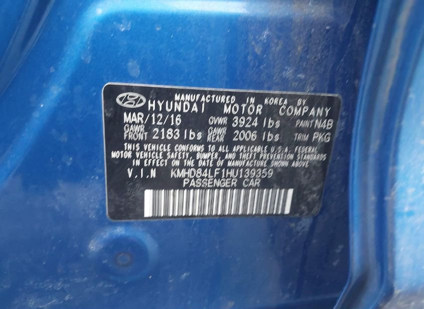 - VIN: KMHD84LF1HU139359