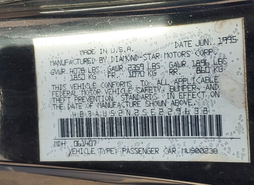 - Название лота: 1995 DODGE AVENGER ES