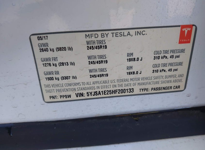- VIN: 5YJSA1E25HF200133