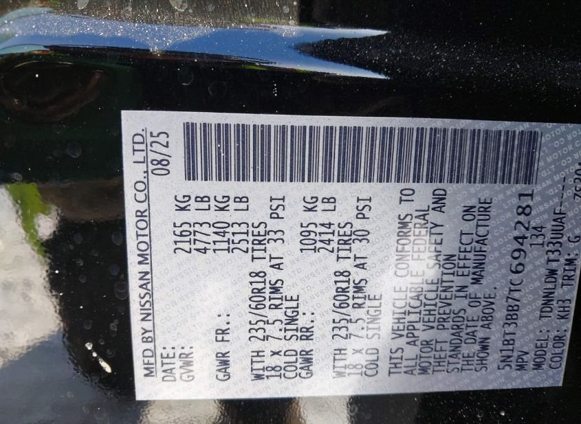 - VIN: 5N1BT3BB7TC694281