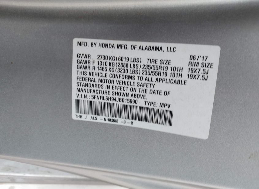 - VIN: 5FNRL6H94JB015690