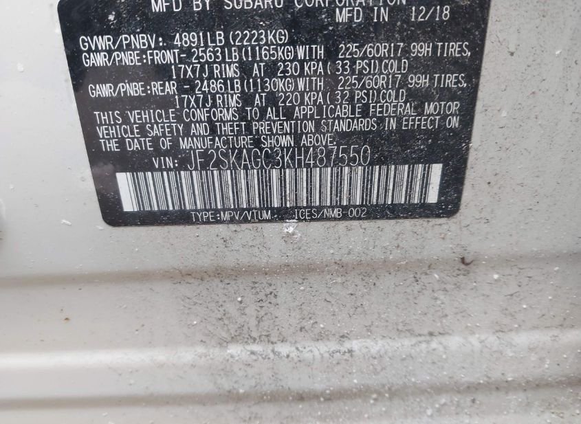- VIN: JF2SKAGC3KH487550