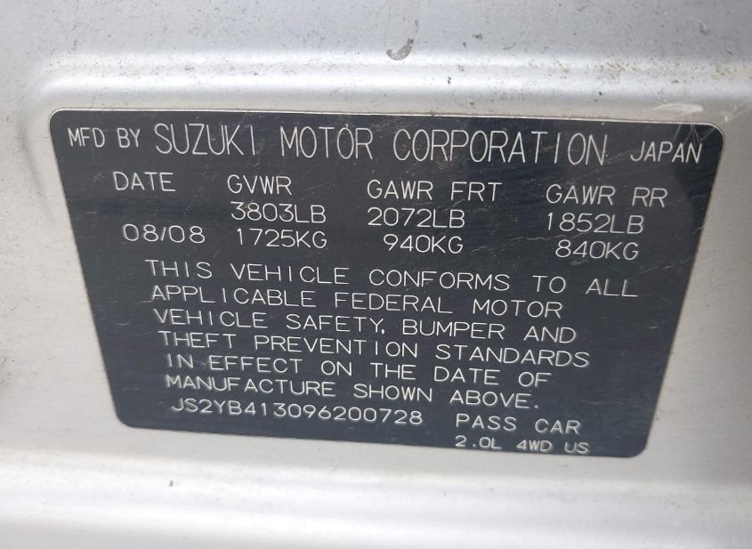- VIN: JS2YB413096200728