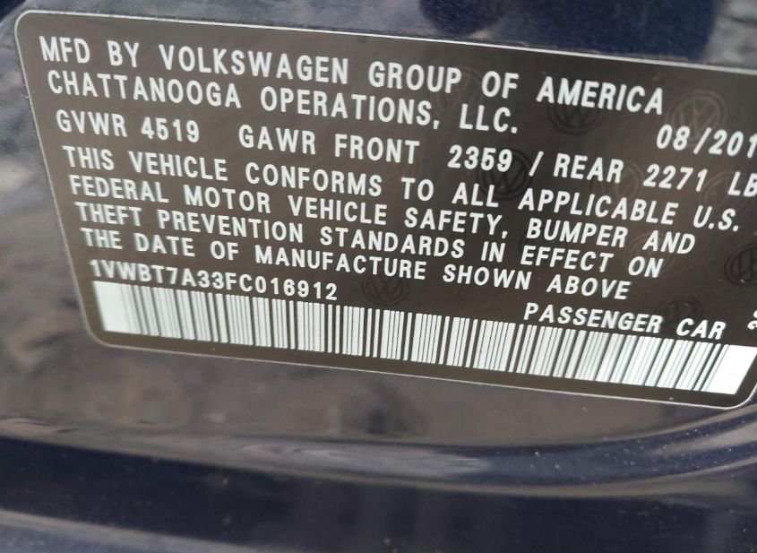 - VIN: 1VWBT7A33FC016912