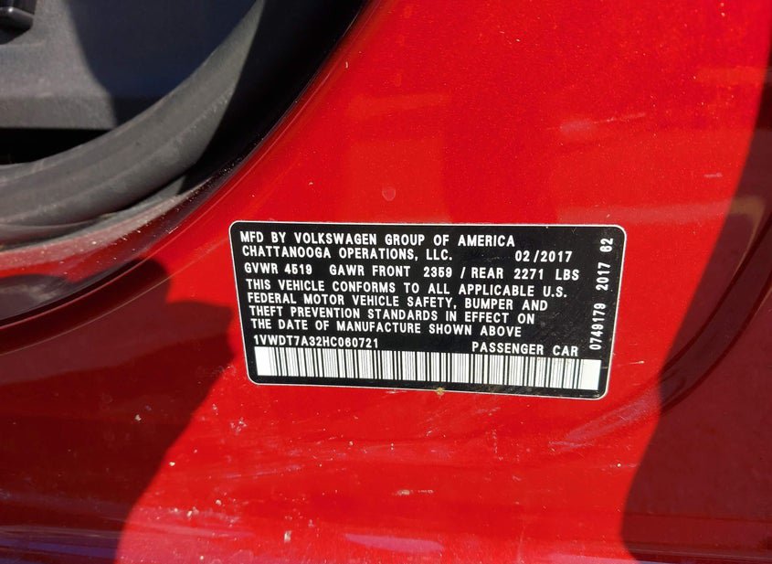 - VIN: 1VWDT7A32HC060721