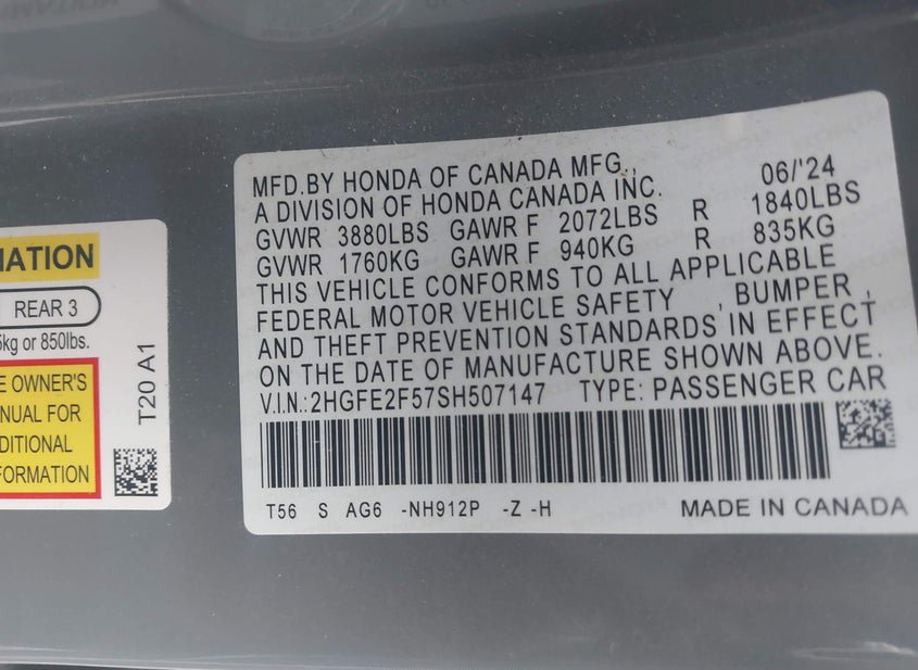 - VIN: 2HGFE2F57SH507147