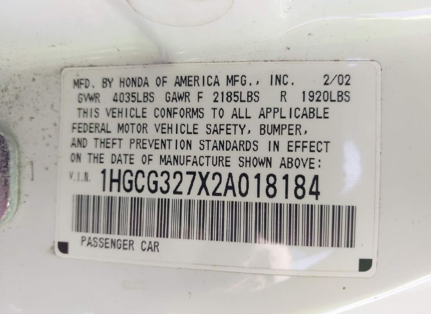 - VIN: 1HGCG327X2A018184