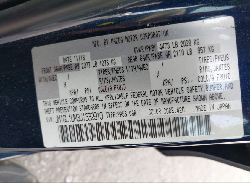 - Название лота: 2018 MAZDA MAZDA6 SPORT