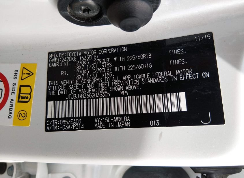 - VIN: JTJBJRBZ6G2035305