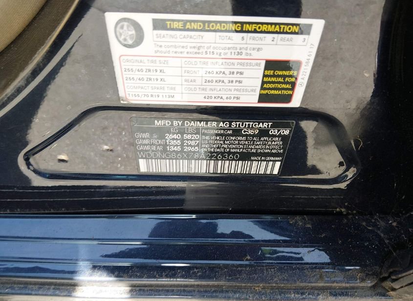 - VIN: WDDNG86X78A226360