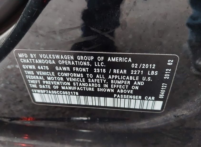 - VIN: 1VWBP7A35CC052178