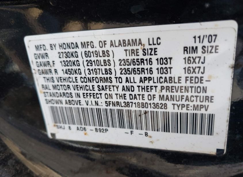 - VIN: 5FNRL38718B013628