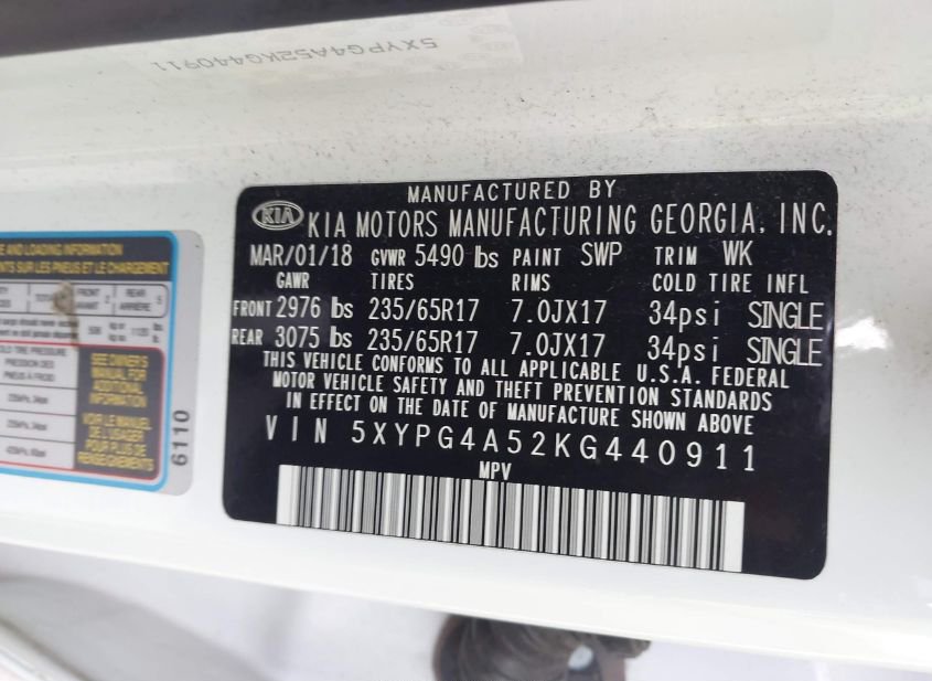 - VIN: 5XYPG4A52KG440911