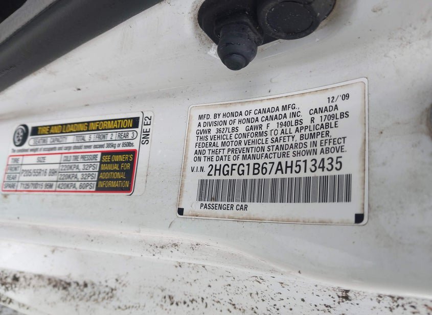 - VIN: 2HGFG1B67AH513435