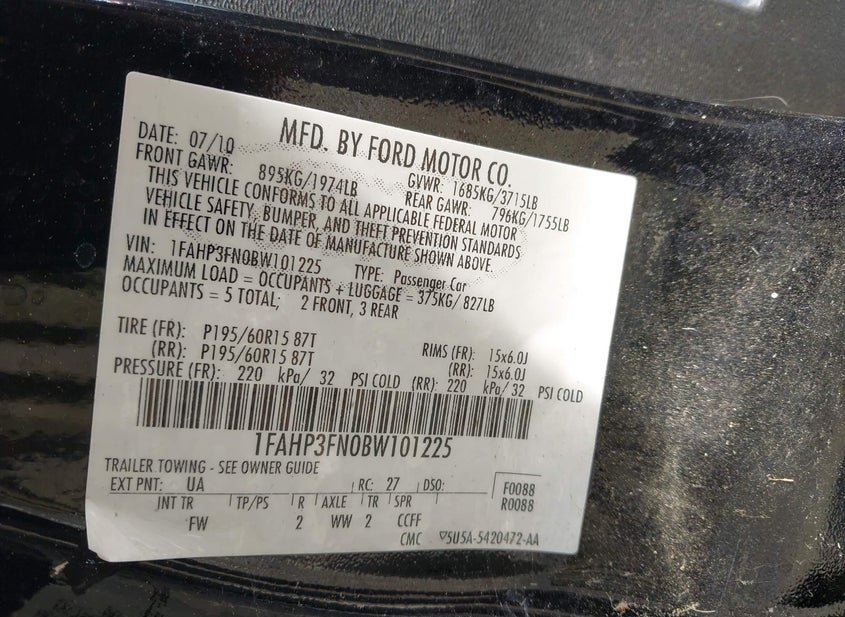 - VIN: 1FAHP3FN0BW101225